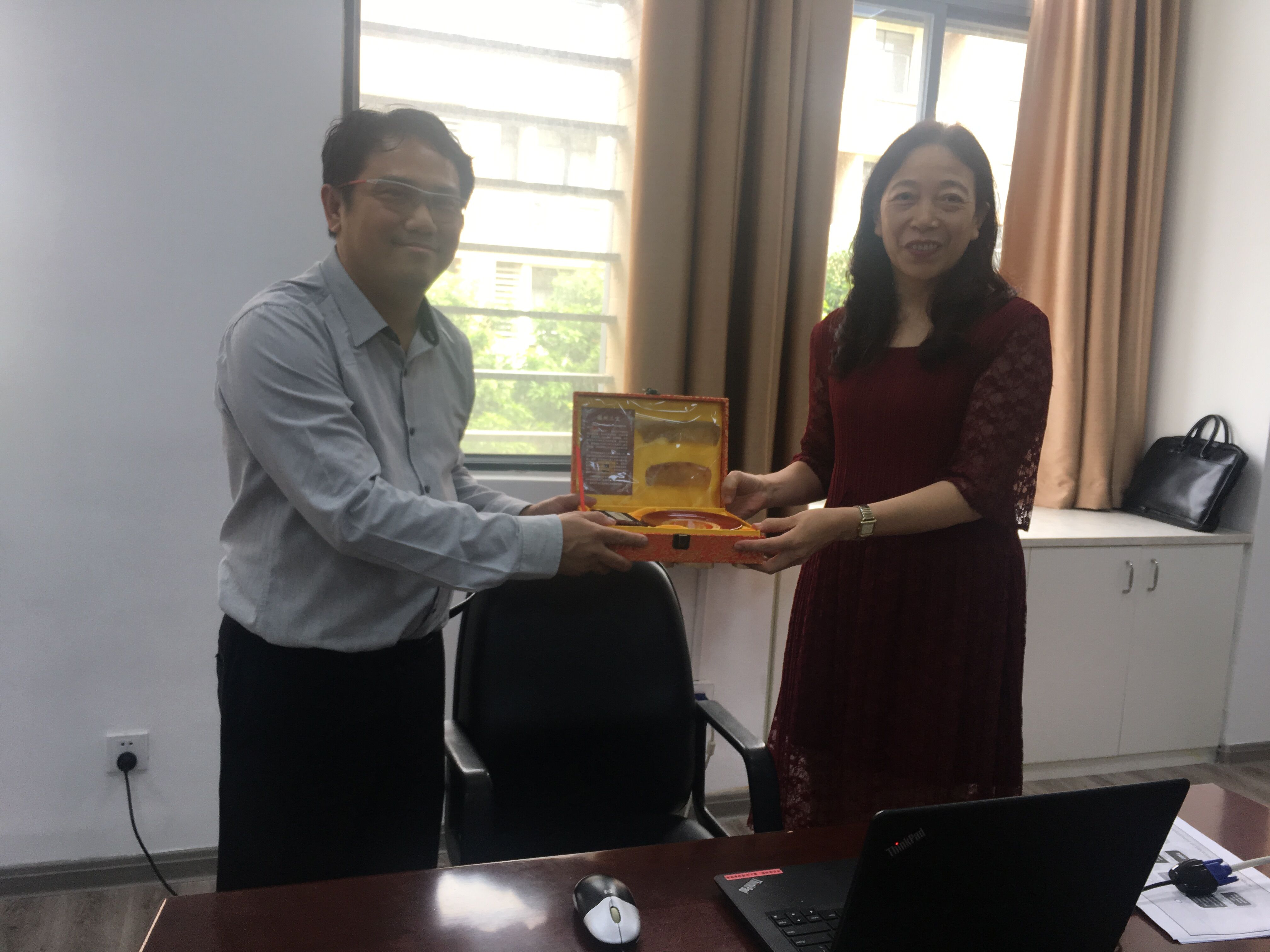 院长许志红教授与教学副院长薛毓强教授热情接待了泰国客人,双方在培养计划、教学模式、毕业要求等方面进行了深入的交流和探讨。许志红教授和塔纳奇教授在会后互赠了礼品,并邀请泰国客人参观了成人影视片