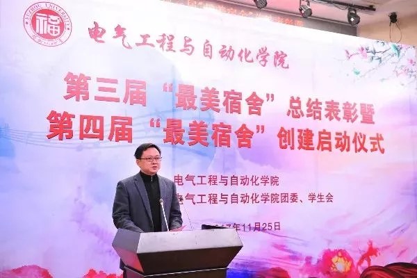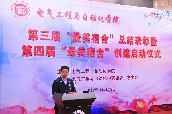 应邀出席大会的吴唐风副处长对获奖宿舍表示了衷心的祝贺,也肯定了最美宿舍评选对活跃校园文化、构建和谐校园的积极作用,并代表学生工作处提出三点要求:一是要在总结中优化活力的顶层设计,把“最美宿舍”的评选升级为学风建设大品牌,增强育人实效;二是在设计帮助后进宿舍多下工夫,力争早日实现间间都是最美宿舍的目标;三是要以评选活动来助力双一流大学建设。