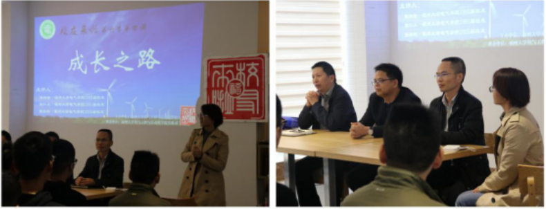 “校友来啦”讲坛。交流会由福大电气(厦门宏发)校友会副秘书长戴晓梅主持。三位学长根据自身经历讲述了自己的成长史和心路历程,就如何择业、如何规划职业生涯、如何走出职场困境及如何在电气行业发挥所长等问题与大学生们展开交流。