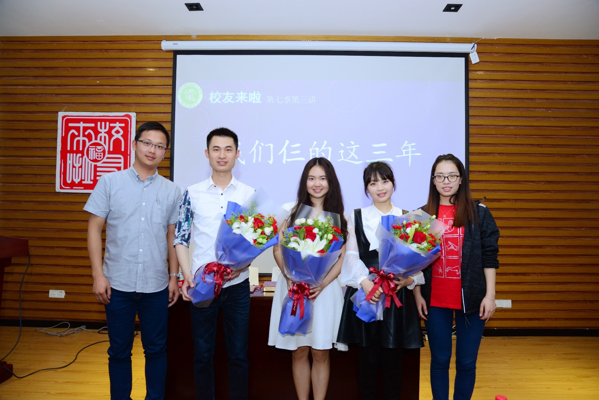 最后,曾蕴华学长、姚至莹学姐、张琳学姐热情而又亲切地与老师们合影留念,感谢本次学长学姐为我们带来的精彩演讲。