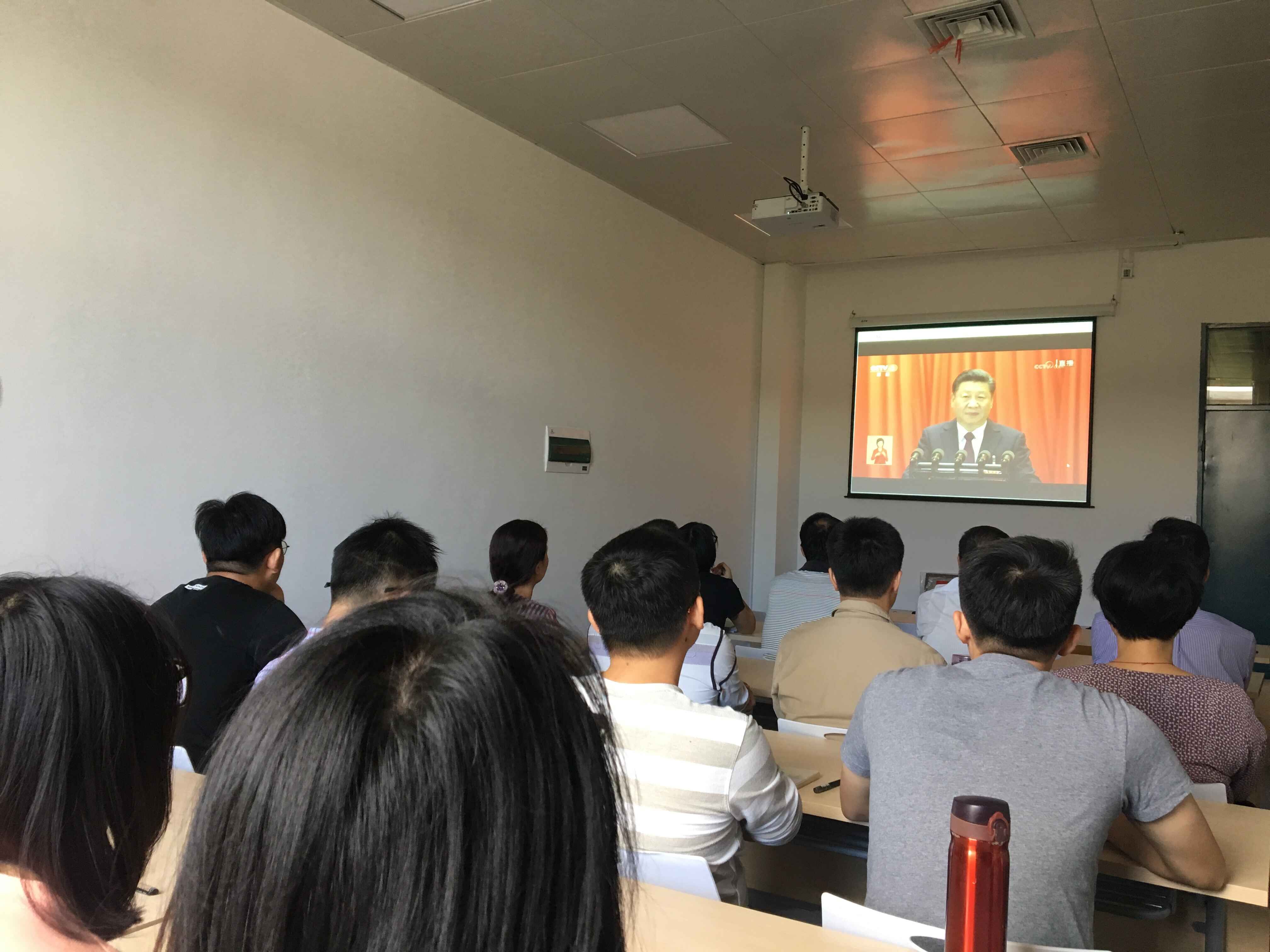 北211共同观看学习习近平总书记在开幕式上的大会报告。