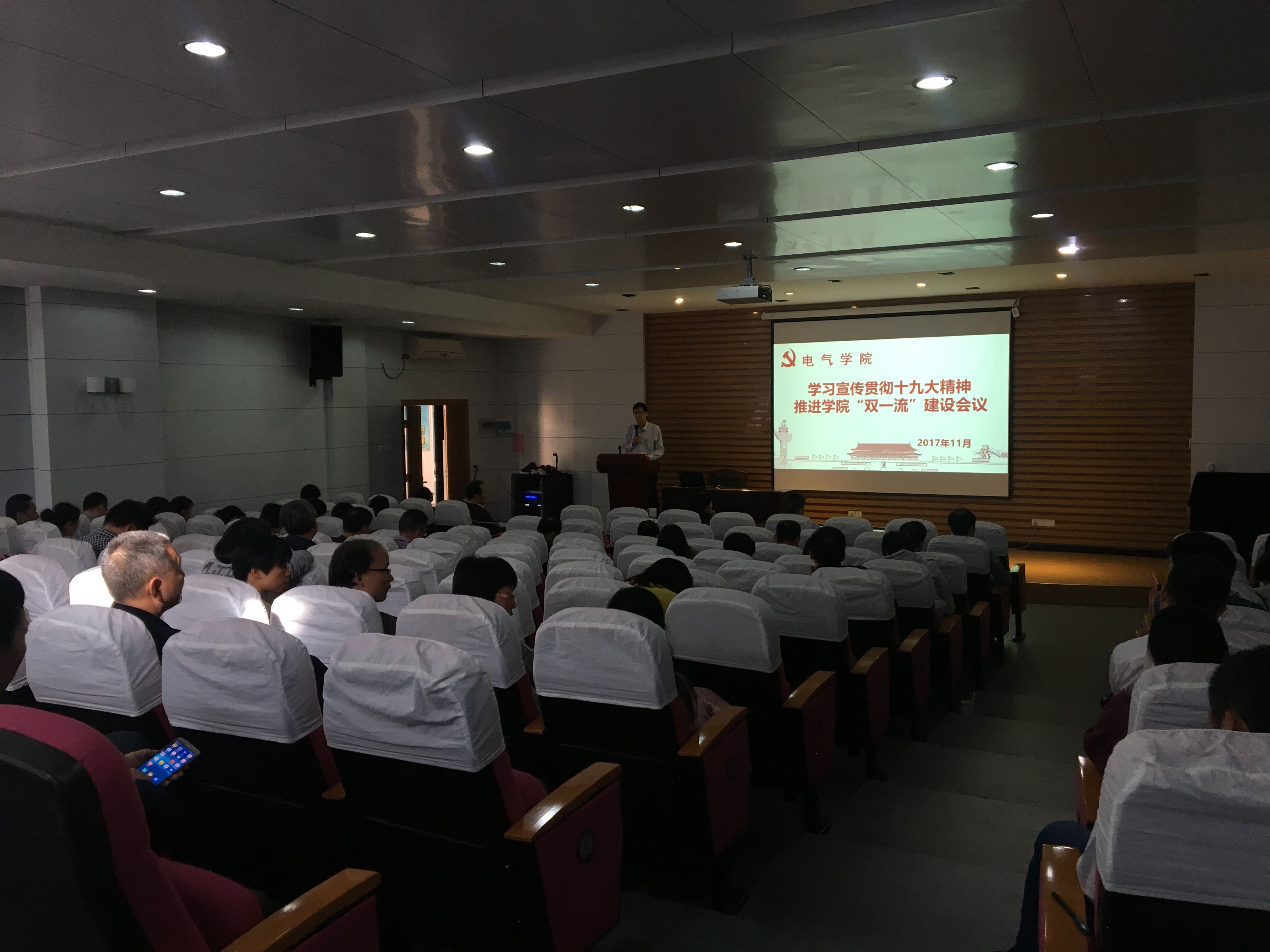 召开全体教职工大会,学习十九大报告精神,部署学院“双一流”建设相关事宜。
