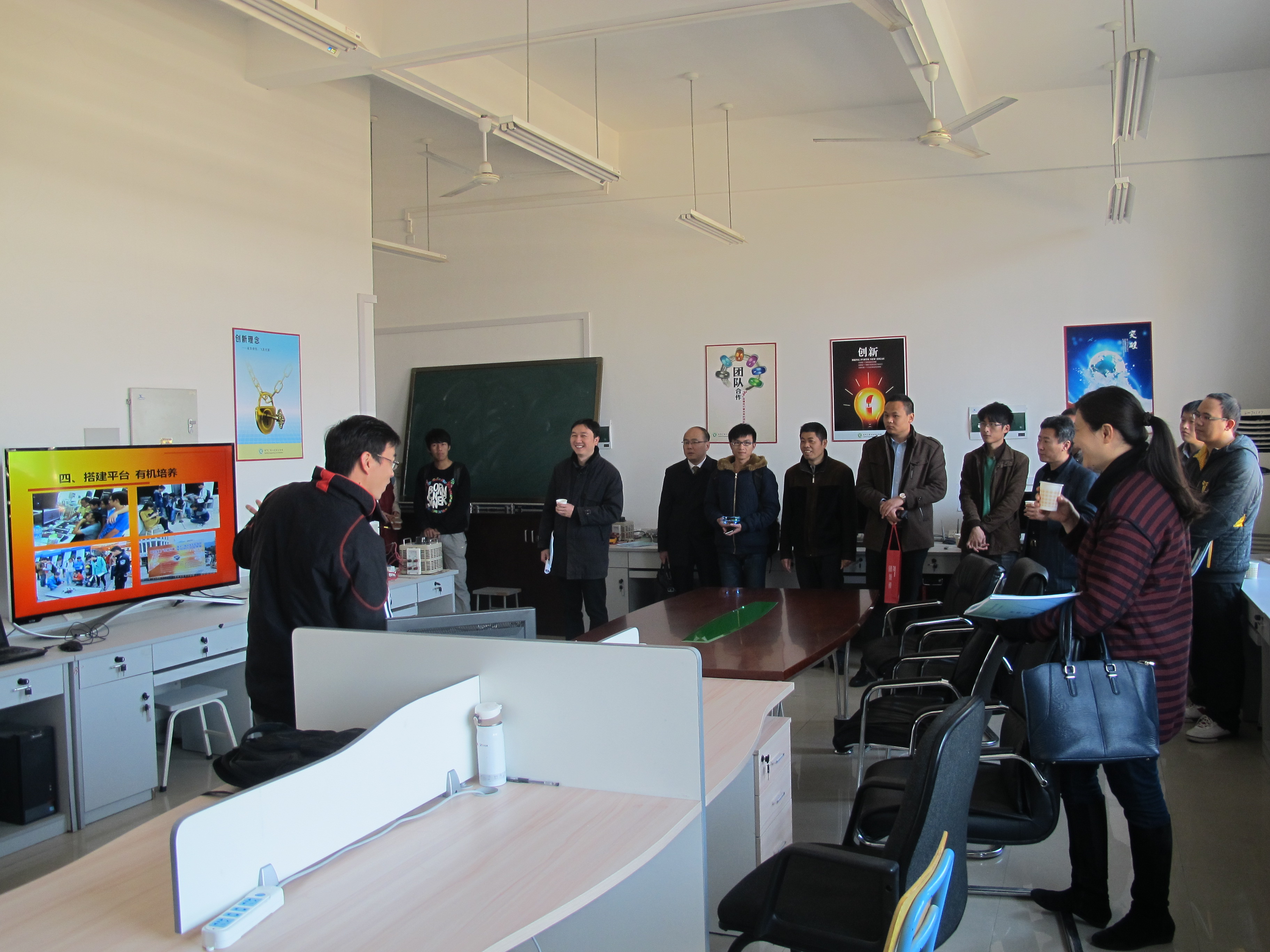 现场查看完毕后,张志雄老师向评估小组简要介绍了学院在学生科技创新创业开展的主要工作以及2015年的展望和规划,得到了评估小组的肯定。