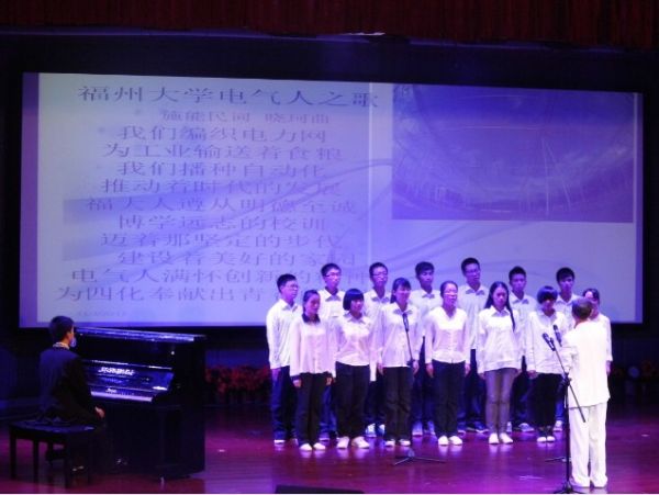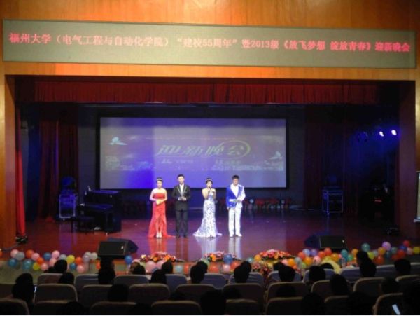 杨毅豪等同学热情洋溢、活力四射的开场舞为晚会拉开了帷幕,随即各种精彩的节目一一登场。其中,施能民老教授一曲《电气人之歌》诉说了电气人心中的热情,激励了在场的学生和老师们。而郭艺馨、吴书迪同学等表演的《模特秀》,不仅表现了时尚气息,其典雅的旋律和飘逸的舞步,更是诠释了电气学子独特的品味与追求。在《新老生歌曲串烧》中,轮番上阵的新老生用一段段歌曲表达了和谐的友谊。伴随着绚丽的灯光和动人的音乐,同学们还欣赏到了《荷塘月色》舞蹈、《心里情景剧》等节目。此外,现场还有“抢答歌曲名”等游戏环节,十分热闹。最后,2013级辅导员翁慧榕、邓潇老师和助导们一起,为同学们献上了幽默的剪辑视频和真情的歌声,晚会就在同学们挥舞的荧光棒和欢声笑语中结束了。