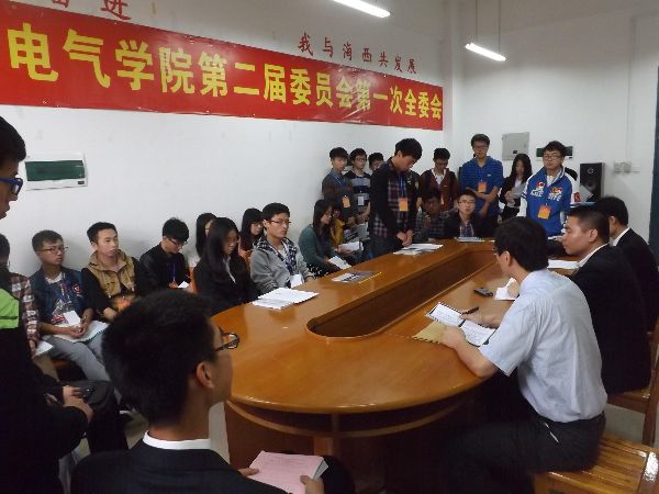 学生会第二次代表大会工作汇报。随后,各个代表团暂离会场,在不同的房间讨论本次大会内容。20分钟后代表们返回会场,在主持人公布选举办法、监票人及候选人名单等事项后选举正式开始。经过各代表紧张有序的投票之后,监票团统计工作开始进行,本着公平公正的竞选原则,最后总监票人公布了10名团委会成员和11名学生委员会成员名单并表示祝贺。