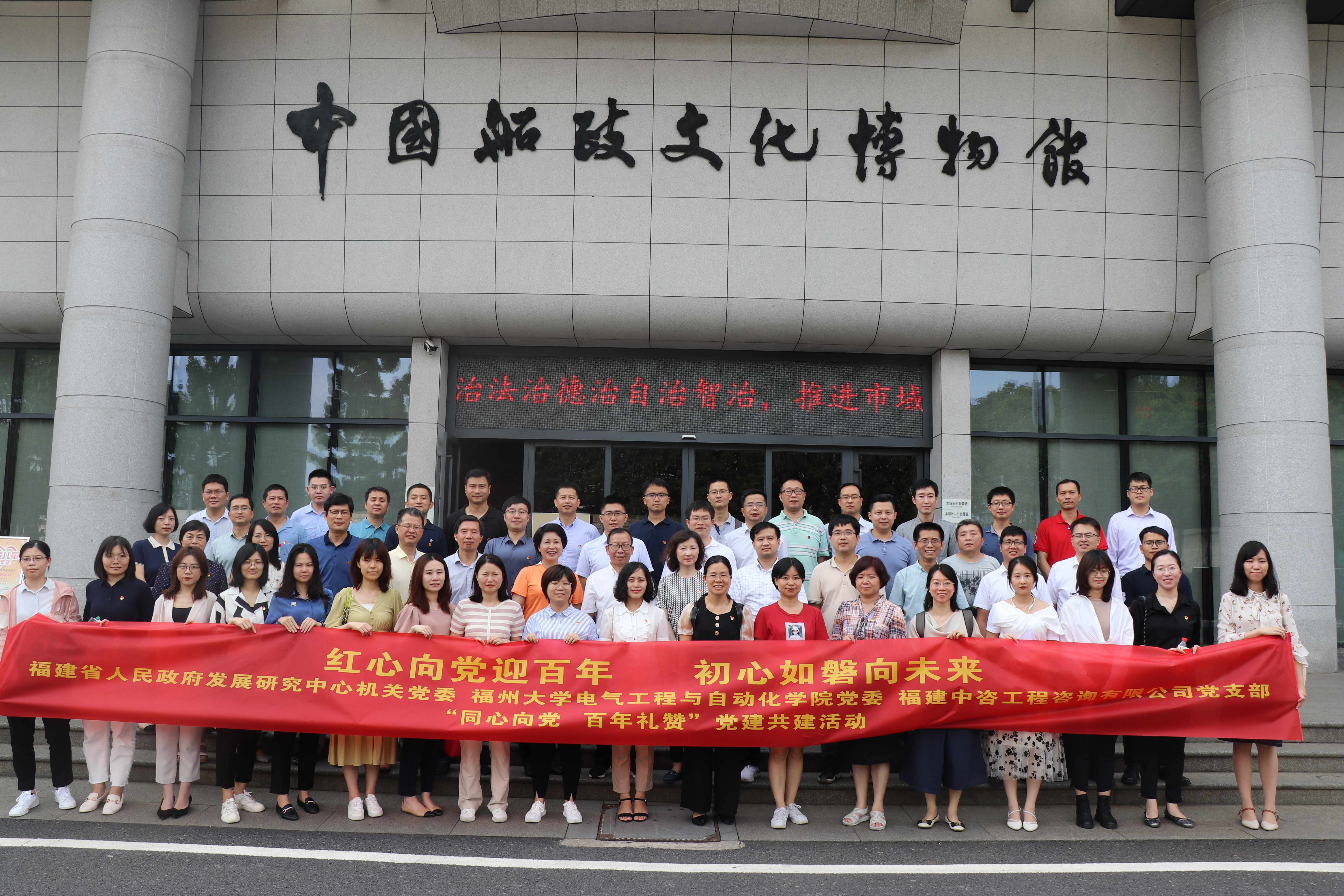 、校机关党委部分党员在院党委书记占永琼同志的带领下,联合福建省人民政府发展研究中心机关党委、福建中咨工程咨询有限公司党支部,赴中国船政文化博物馆、马江海战纪念馆、福船集团开展“红心向党迎百年 初心如磐向未来”党建共建活动,进一步促进党员同志学史明理、学史增信、学史崇德、学史力行。
