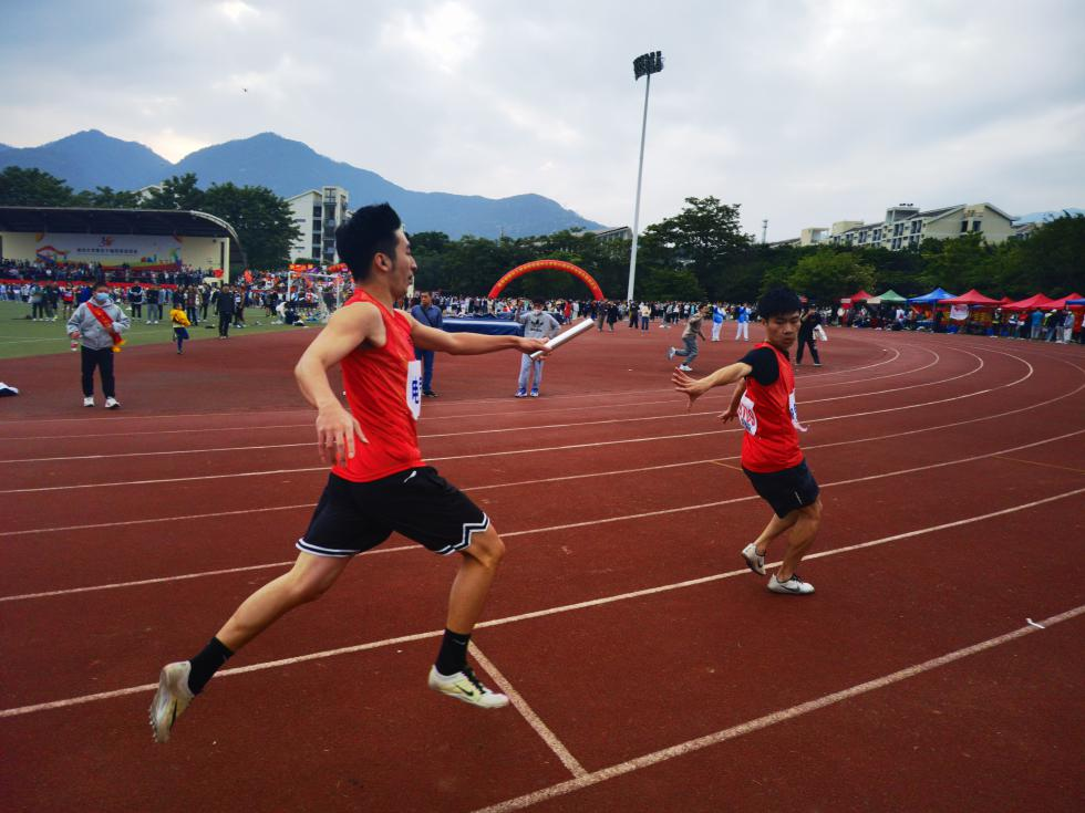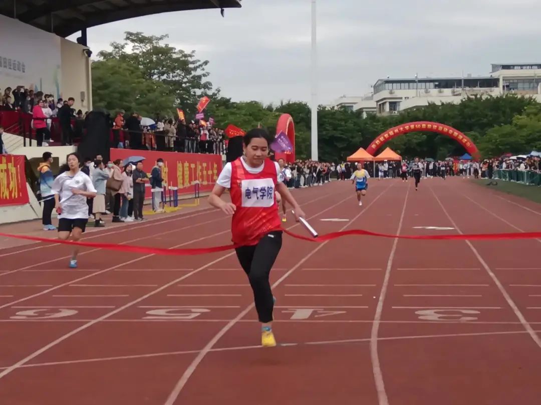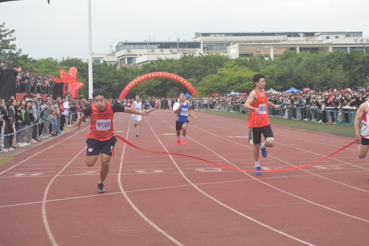 在校运会压轴项目男学甲4*100米接力比赛中,第四棒孙景濠同学在最后冲刺阶段连超两位,勇夺接力第一,将“无体育不电气”的敢拼搏敢奋斗的精神体现得淋漓尽致!