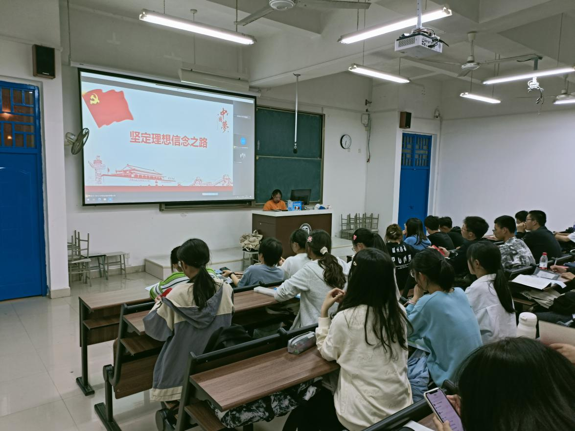 正式上课前,张老师抛出理想的命题来引导此次课程的主题,与同学们互动加深理解,并围绕着“理想信念是什么,我们为什么要坚定理想信念,习近平的坚定理想信念之路,青年学子怎样坚定理想信念”四个问题开展了本次党课。