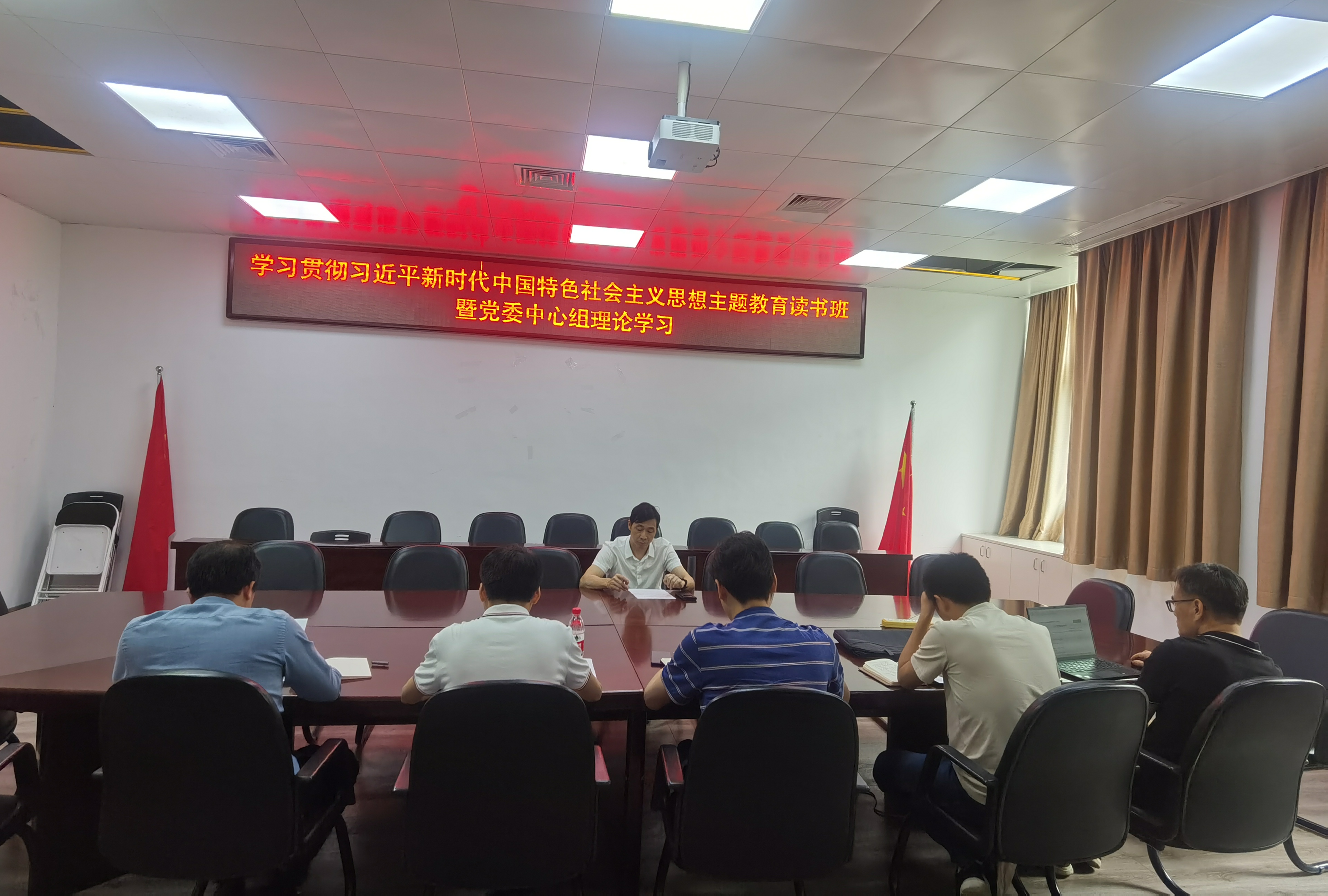 学习贯彻习近平新时代中国特色社会主义思想主题教育读书班暨党委中心组理论学习会在学院南212举行。学院党委书记潘志辉主持会议,学院党委班子成员、党委理论学习中心组成员参会。