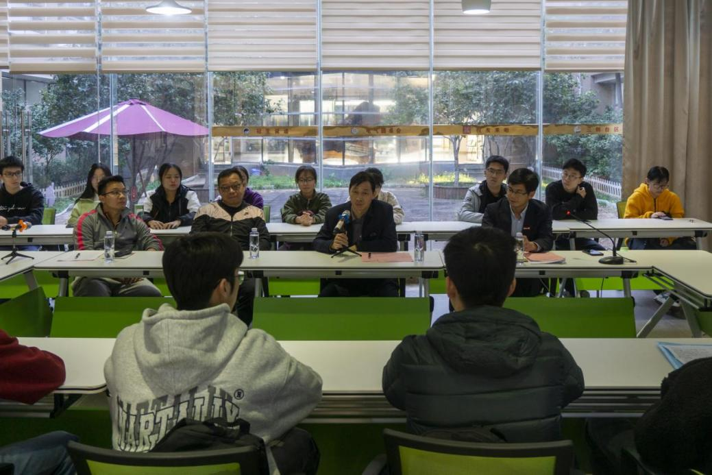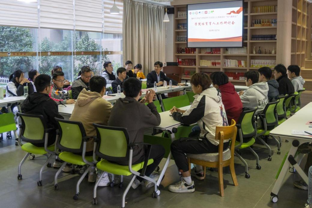体育育人工作座谈会于新楚楼一楼青年马克思主义者研读社召开。体育教学研究部黄文敏老师、院党委书记潘志辉、院党委副书记钟钛申、院团委书记李金土、全体辅导员、“振奋杯”各队长和成人影视片
