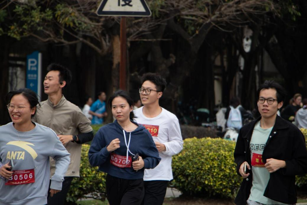 随着发令枪响起,比赛正式开始。“12·9环校跑”竞赛组中的男子组率先开跑,女子组紧随其后出发,一面面飞扬的红旗展现我校大学生朝气蓬勃、奋发进取的精神面貌。