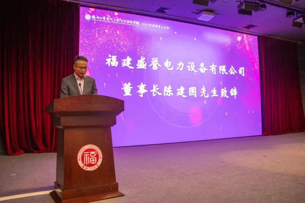 福建省盛誉电力设备有限公司董事长陈建国先生认为,资助育人是一项实实在在的善举,能够为品学兼优的困难学生创造更好的学习条件,让他们在社会大家庭中愉快地生活,幸福地成长,实现自己的人生理想。他表示,福建盛誉电力设备有限公司成立以来,在社会各界的大力支持与爱护下得到了快速发展,有责任也有义务用公益表达感恩,用爱心回报社会,向家庭经济困难学生伸出援助之手。最后,陈建国先生希望各位同学要树立自尊、自爱、自立、自强和奋发向上的精神,把来自学校、社会的关爱化作战胜困难的强大动力,奋发图强,树立信心,立志成才,为社会发展尽责,为国家建设出力,为家乡、母校争光!