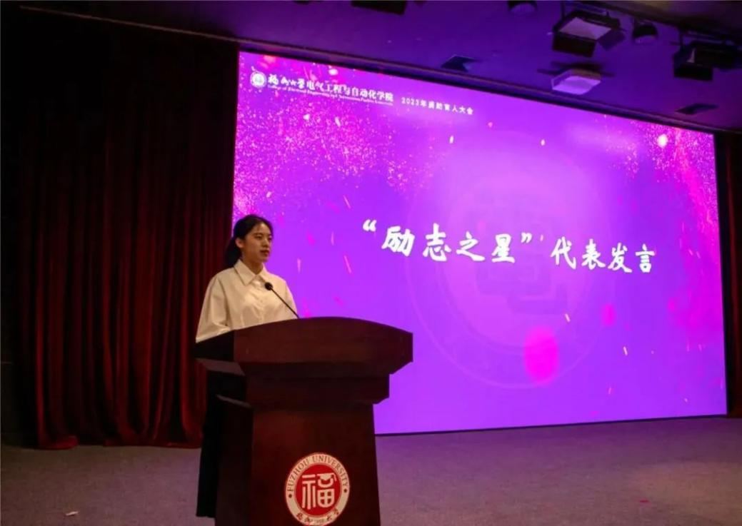 坚持高起点谋划资助工作的理念,结合资助育人与立德树人的根本任务,表达了不断提升资助育人的“精度”“温度”“深度”的期望。最后,许院长从三个方面与同学们共勉,一是要志存高远,砥砺前行,追求更大的梦想,到达更远的彼岸;二是要珍惜所有,踔厉奋发,珍惜每一次机会,勇往直前,不断追求更高的目标;三是要坚守初心,牢记使命,在实践中练就真本领,为实现人生价值和社会的繁荣发展而努力奋斗,真正做到“福大电气,顶天立地”。