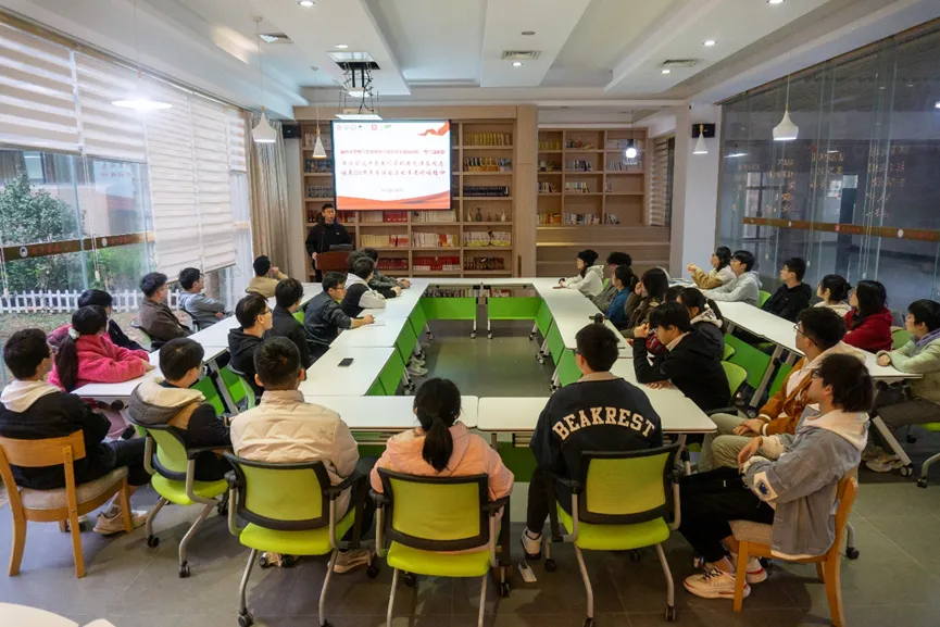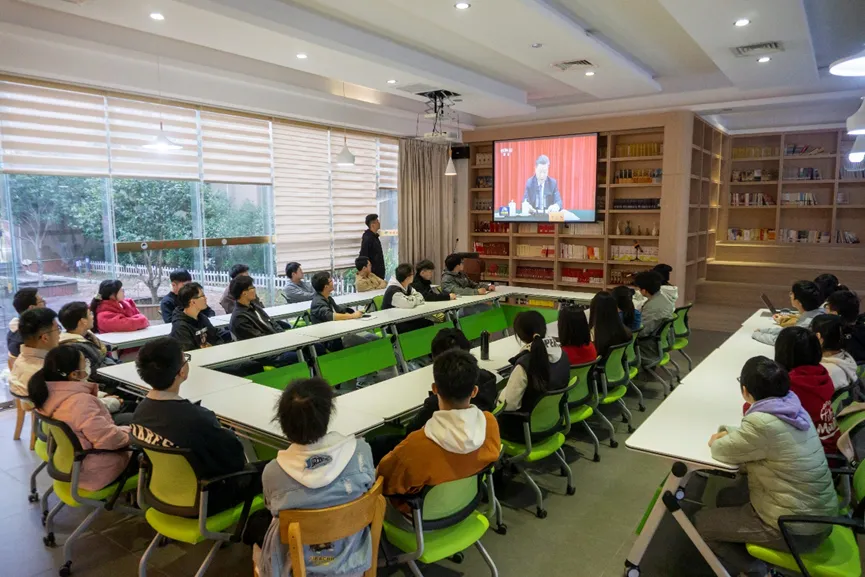青年马克思主义者研读社成员、学生会和研究生会骨干于学院楼一楼青马研读社召开学习会,集中学习习近平总书记在纪念毛泽东同志诞辰130周年座谈会上的重要讲话精神。