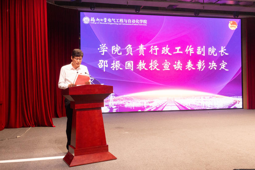 第二项议程 ,学院负责行政工作副院长邵振国宣读表彰决定并对获奖集体与个人表示祝贺。