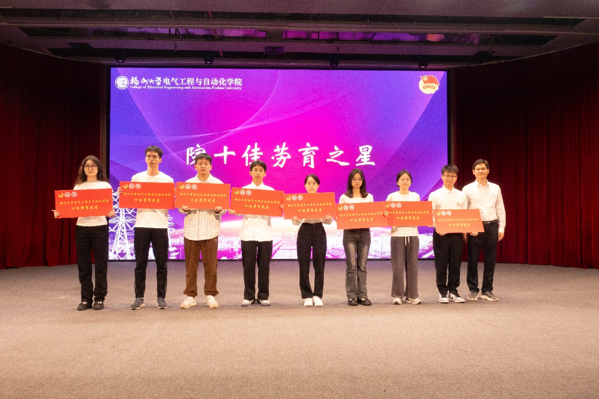 应用电子系主任周扬忠为获得“十佳劳育之星”表彰的学生颁奖。