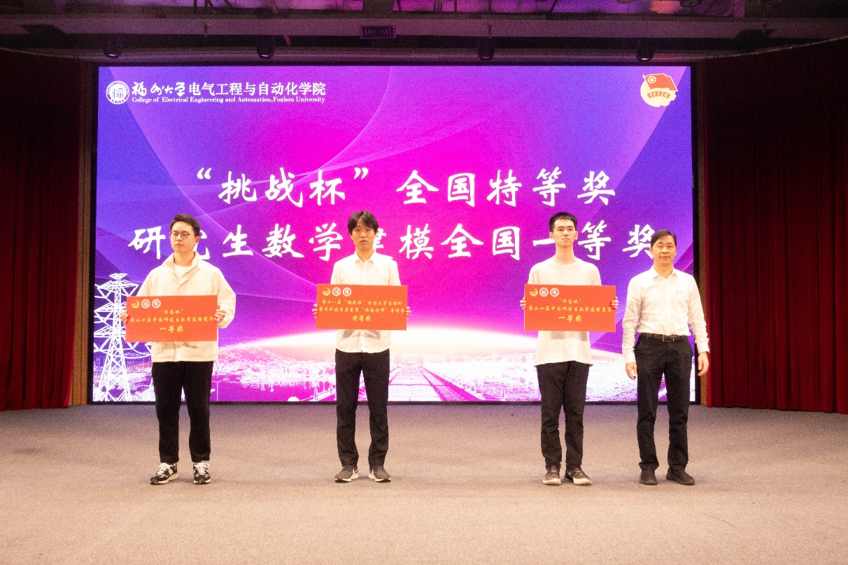 学院党委书记潘志辉为获得“2023年度挑战杯”全国特等奖、研究生数学建模全国一等奖、宝钢奖学金荣誉的学生代表颁奖。