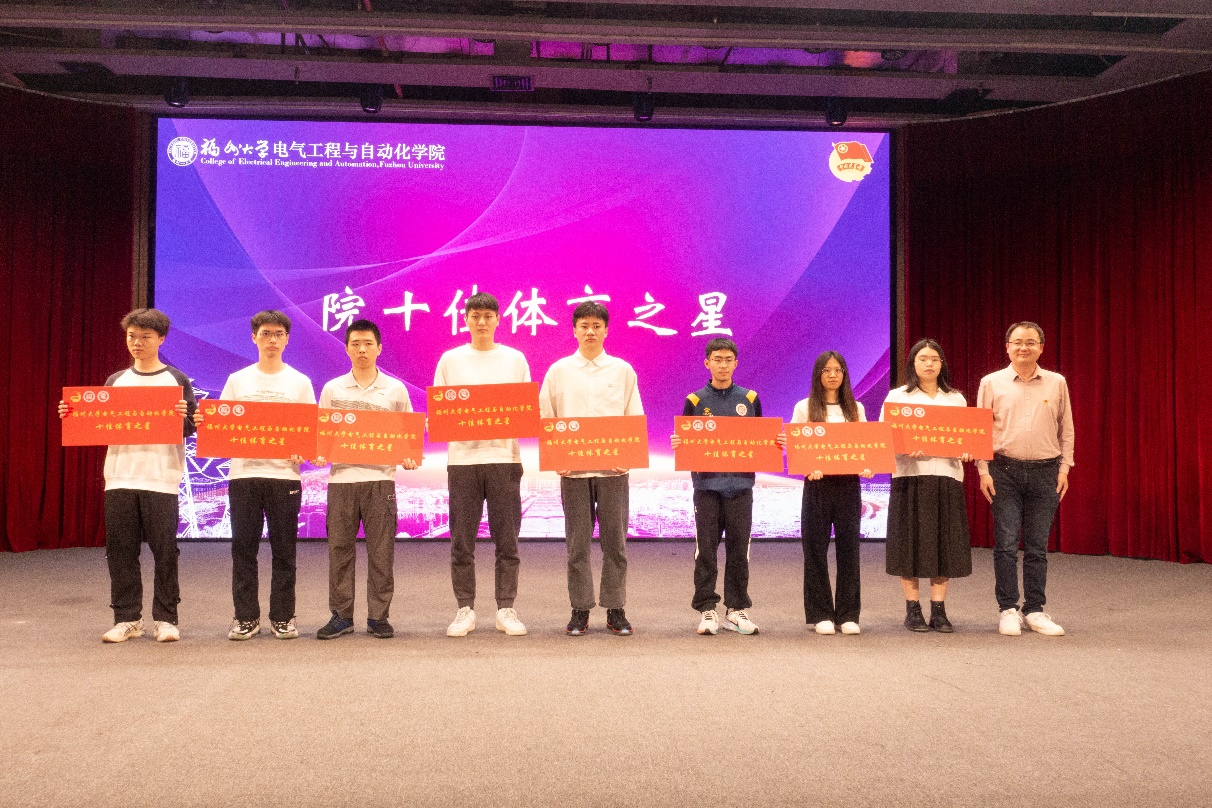 电工电子系党支部书记陈庆彬为获得“十佳体育之星”表彰的学生颁奖。