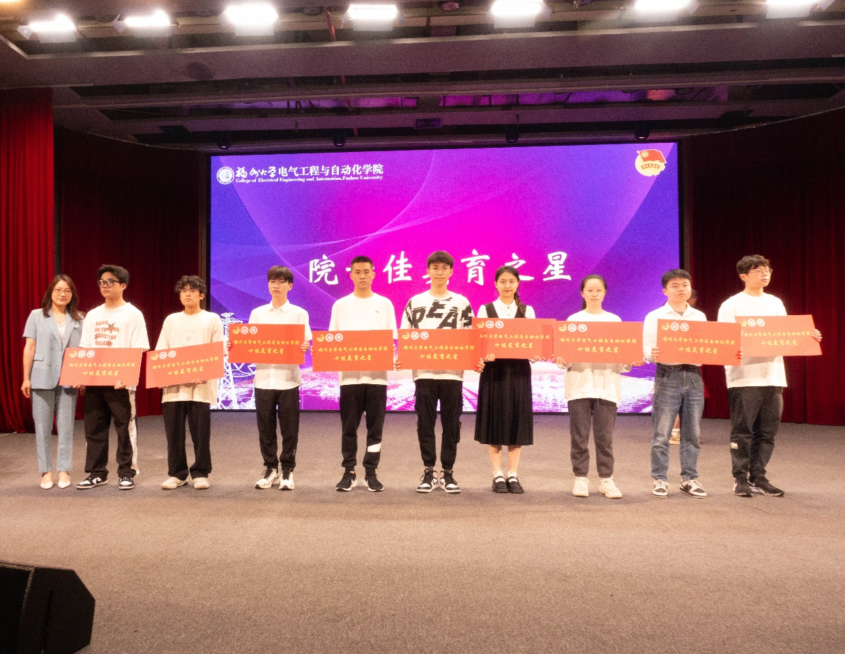 电力系党支部书记刘丽军为获得“十佳美育之星”表彰的学生颁奖。