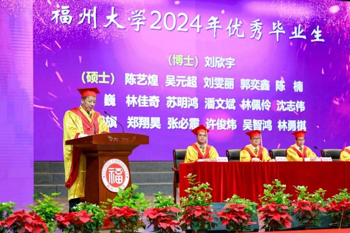 “临别之际,如果有一样东西希望你们一定要从这里带走,那必然是福大所赋予你们的‘三种精神’和追求卓越的意识。从今天开始,无论你们在哪里,你们站立的地方就是福大。作为新一代的年轻脊梁,你们有精神,民族才有信念;你们有追求,国家才有希望。无论你们将来从事什么工作,都要牢记‘明德至诚,博学远志’的校训,践行福大‘三种精神’,增强‘福大电气,顶天立地’的志气、骨气和底气!”