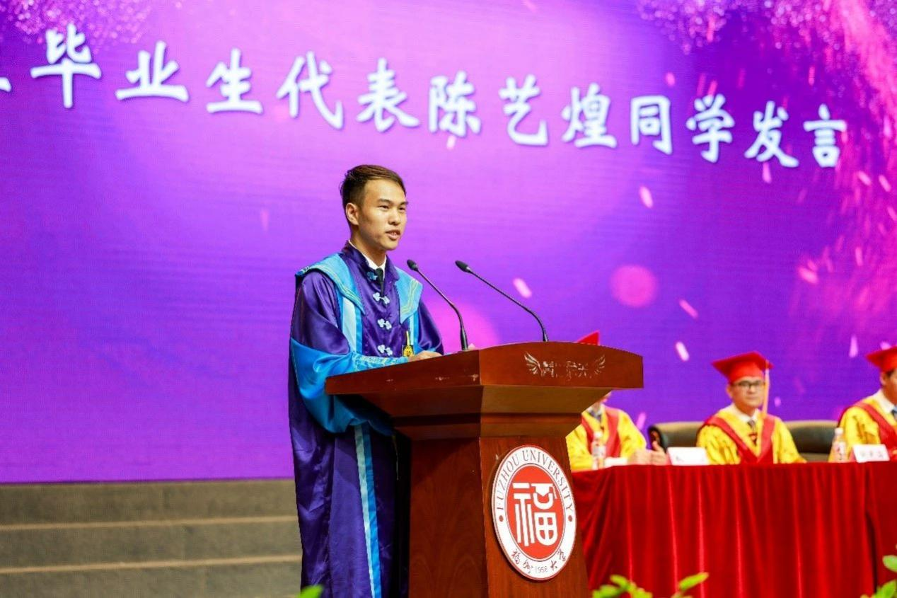首届研究生党员标兵陈艺煌同学回忆了研途路上的点点滴滴,有师长的倾囊相授,有同窗的教学相长,他从身逢盛世、责任在肩的角度出发,祝福毕业生们学有所成,行有所得,前路漫漫亦灿灿。