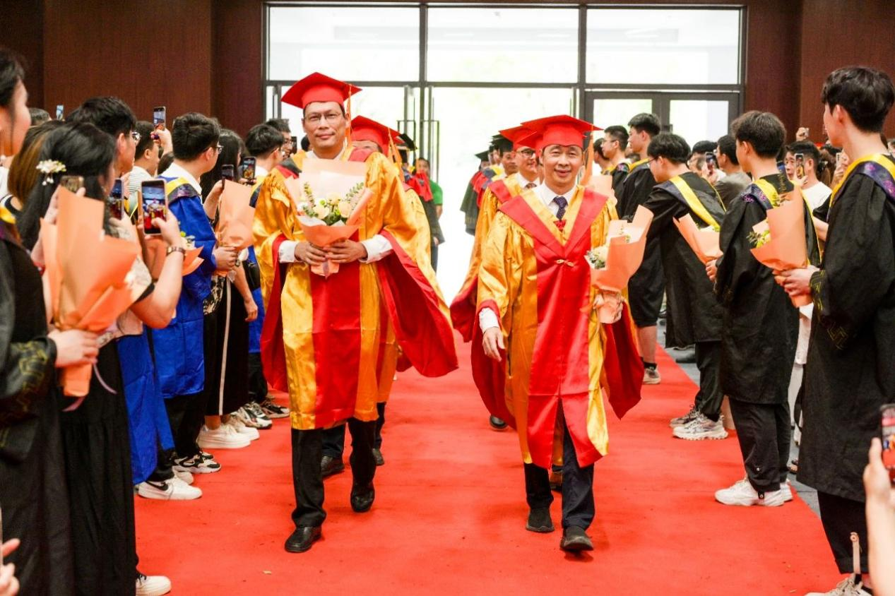 院党委书记潘志辉老师、负责学院行政工作副院长邵振国教授、院党委副书记钟钛申老师、副院长王武教授、院长助理鲍光海教授、院长助理郑跃胜教授、院长助理张艺明教授、学位委员会委员、系主任、支部书记、学位点负责人、全体辅导员及2024届毕业生一同参加典礼。典礼由院党委副书记钟钛申主持。