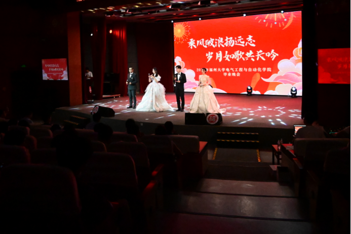 2024年毕业晚会在图书馆博学厅隆重举办。出席毕业晚会的领导、老师有负责学院行政工作副院长邵振国教授、成人影视片