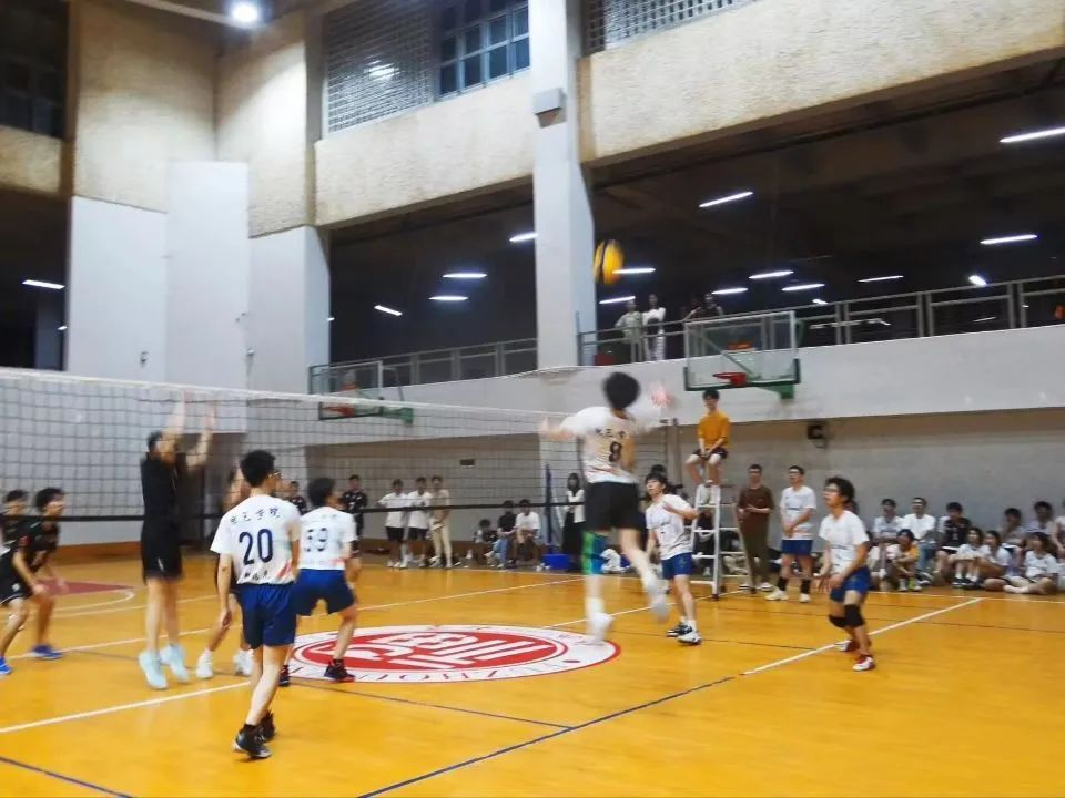 学子全神贯注投入比赛,队员们之间默契配合,他们以精湛的技术和灵活的动作展示了一次次精彩的进攻和防守,引起现场掌声如潮。整个现场充满了紧张和激烈的氛围,观众们的呐喊声此起彼伏,为排球联赛增添了一丝特殊的魅力。