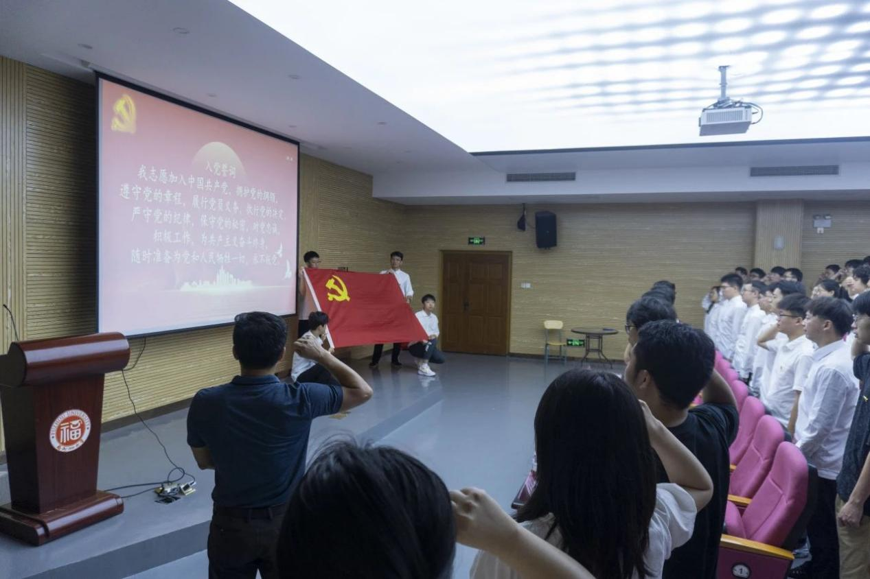 在学院团委书记李金土老师的带领下,全体党员肃立,面对党旗,右手握拳,庄严宣誓。铿锵有力的誓言在报告厅内久久回荡。重温入党誓词,铭记入党初心,既是鞭策,也是激励。