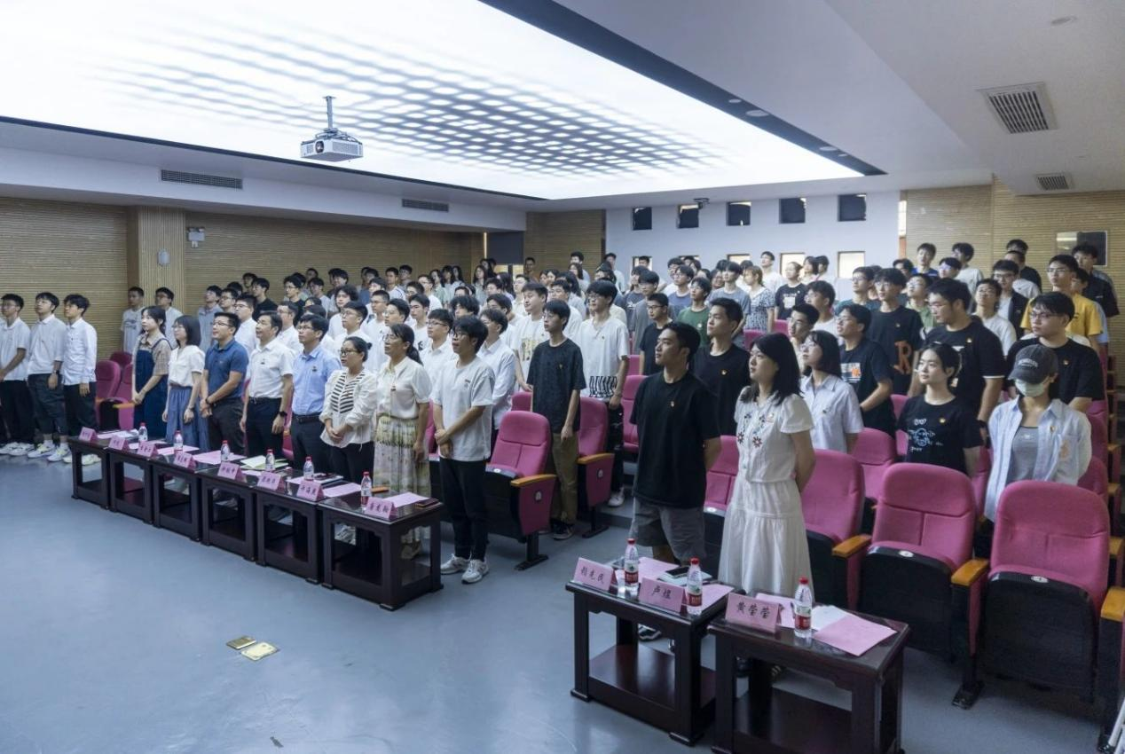 于新楚楼北230报告厅开展“七·一”重温入党誓词活动。出席本次活动的有学院党委书记潘志辉,党委副书记兼纪委书记钟钛申,团委书记李金土,团委副书记梁艳华,全体辅导员,全体学生党支部书记以及2023年下半年、2024年上半年新发展的预备党员。本次活动共分为五个议程,由研究生辅导员黄莹莹老师主持。