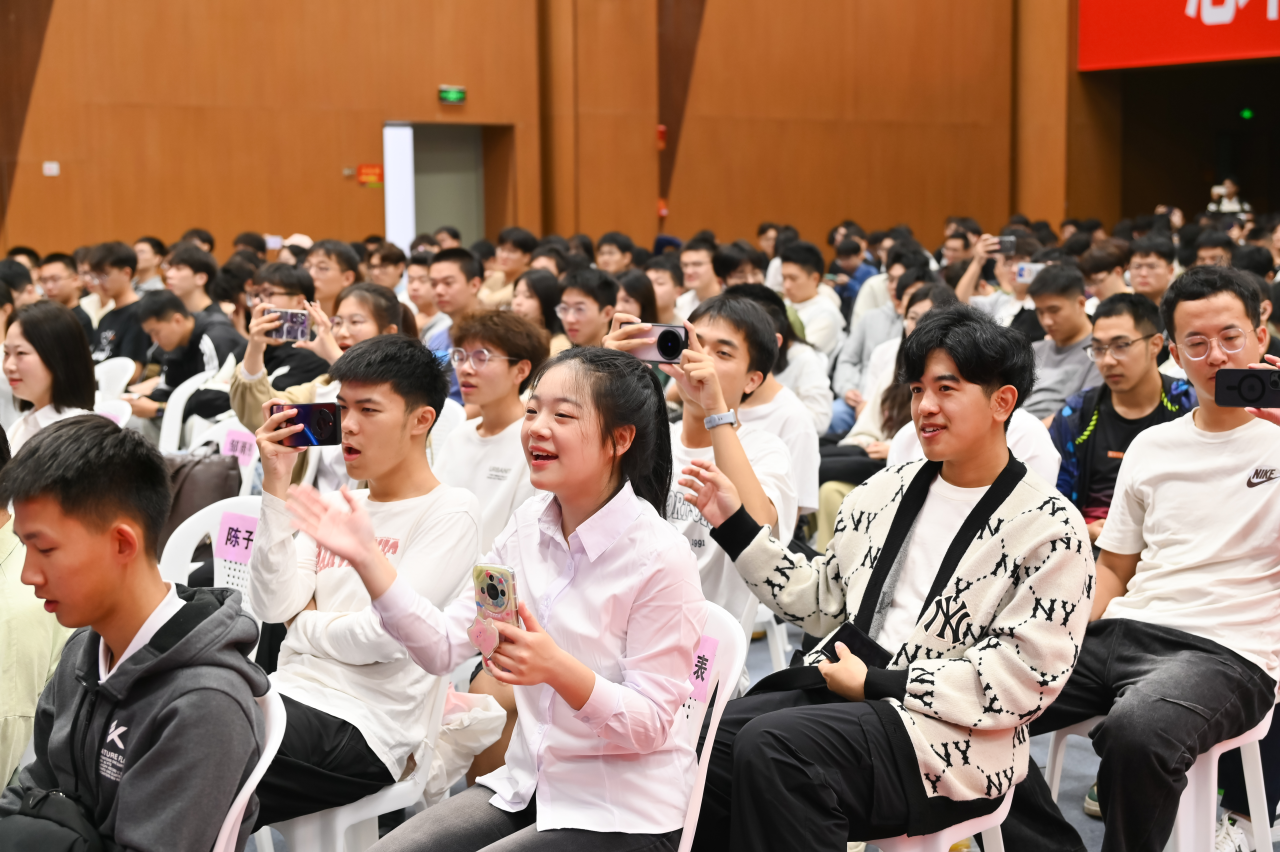徐哲壮教授以“黑神话悟空”为喻,将新生比作经历磨砺后修成正果的“天命人”,对于全新挑战的开始,徐教授分享了三个秘诀:天、地、人。“天”即时间,时间是最宝贵的资源,要做好时间规划,课后复习知识、多做练习,通过点滴努力积累,终将迎来成长的质变。“地”指资源,要充分利用学校的图书馆、自习教室、实验室等硬件资源,为自己创造良好的学习环境。“人”则是自己,自己是决定成长轨迹的核心力量,要有积极主动的学习态度和强烈的自我驱动力。