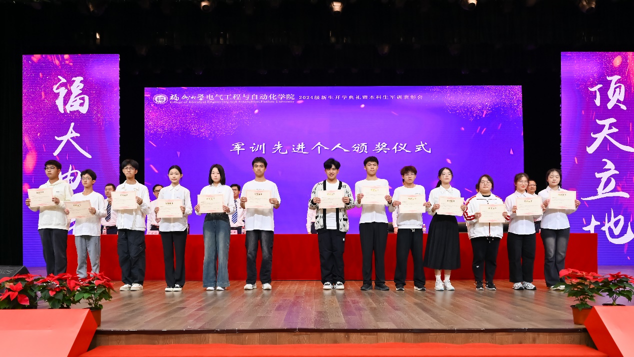 院长助理鲍光海教授宣读2024级本科生军训表彰决定,院领导为军训先进集体和个人颁奖。