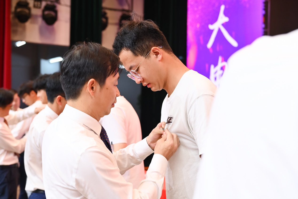 院领导为新生代表佩戴校徽