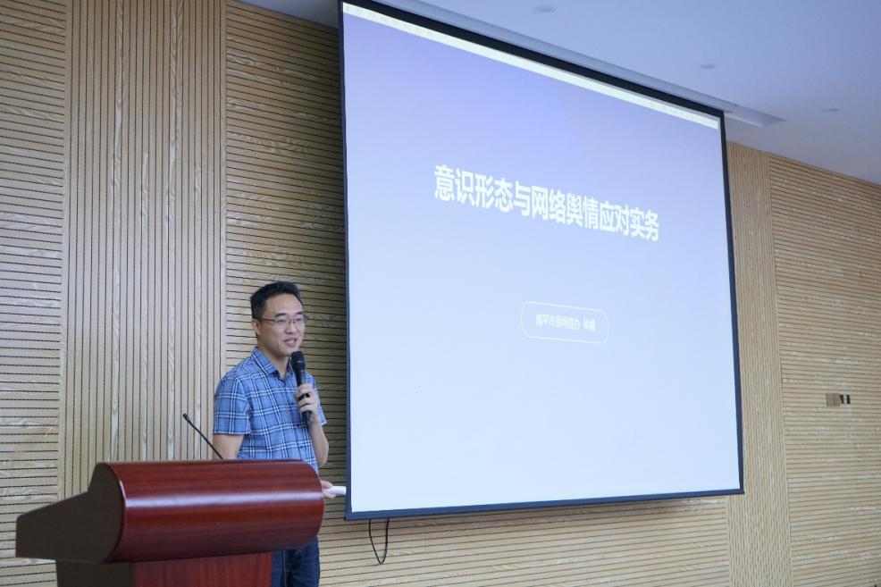 在学院楼北230召开《意识形态与网络舆情应对实务》专题讲座,南平市委网信办林檬副主任为与会领导、师生进行了分享。他解释了意识形态的构成,指出了意识形态工作的重要性。同时,林主任强调,网络舆情是舆论的集中爆发,直接作用于意识形态,必须防范其对意识形态堤坝的冲击,并由此提出了应对网络舆情的三个原则和三个手段。最后,他提出了抓舆情收集、抓分析研判、统筹协调舆情、加强队伍建设、做好应急演练等建议。