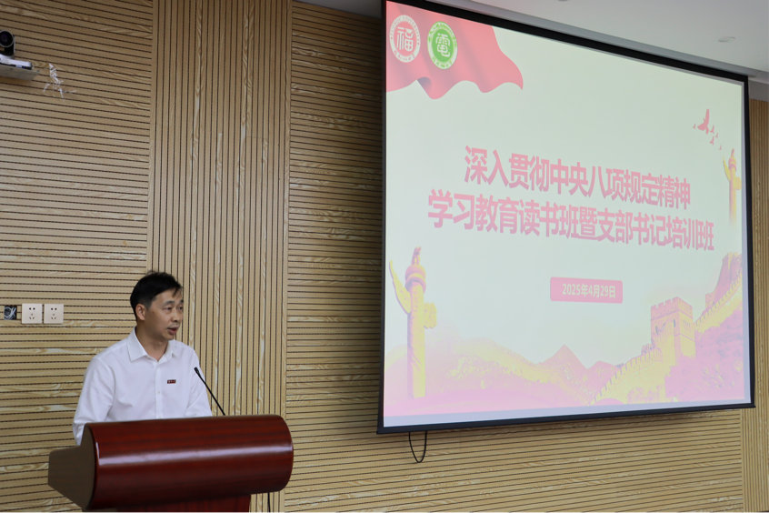 4月29日,深入贯彻中央八项规定精神学习教育读书班暨支部书记培训班在学院楼北230开展。培训班上,院党委书记潘志辉首先强调了中央八项规定的重要意义,指出这是全面从严治党的重要抓手。同时,他结合实际案例,深入浅出地讲解了八项规定在日常工作中的具体体现。最后,潘书记还分享了自己对八项规定的理解,鼓励大家将所学知识运用到实际工作中,推动学院党风政风建设再上新台阶。