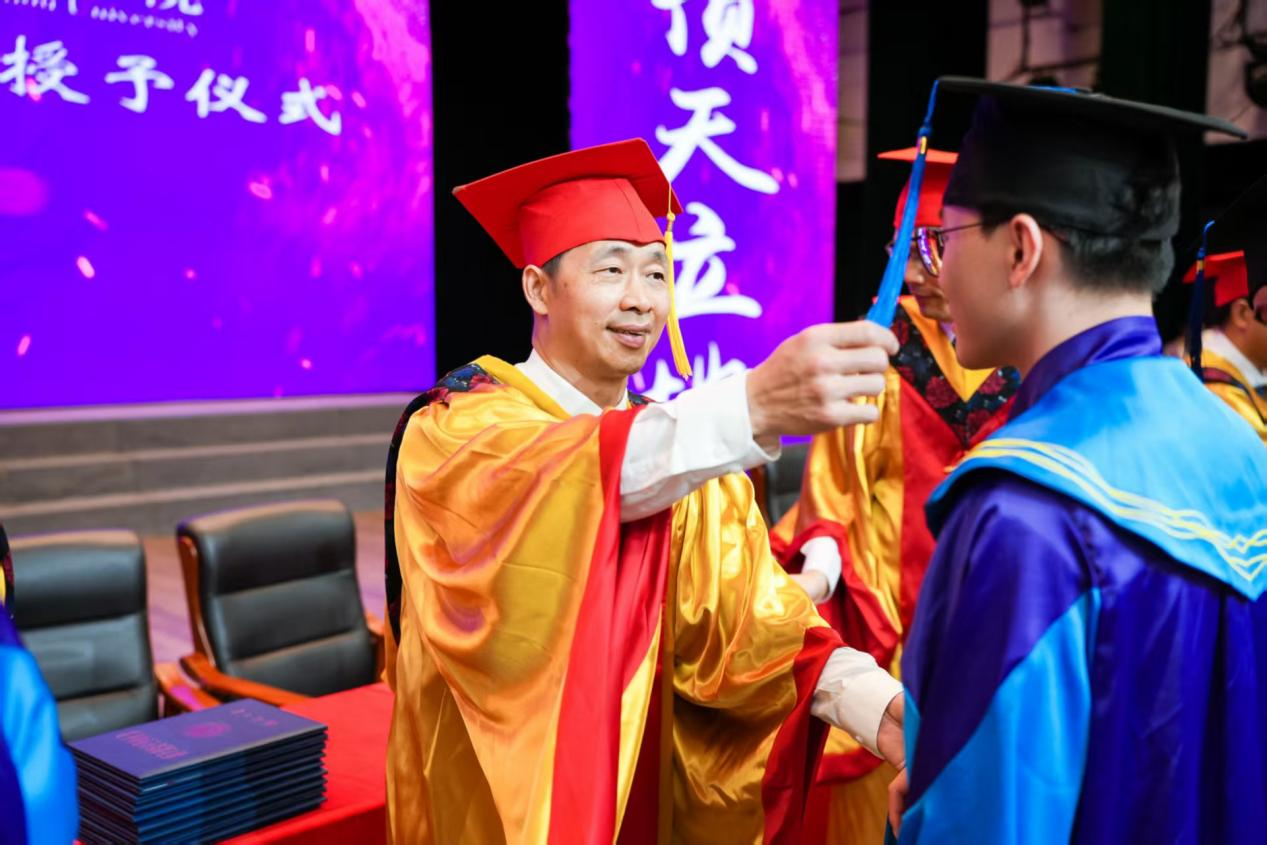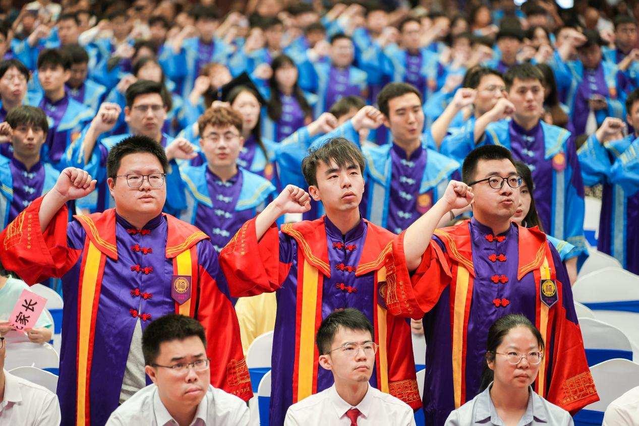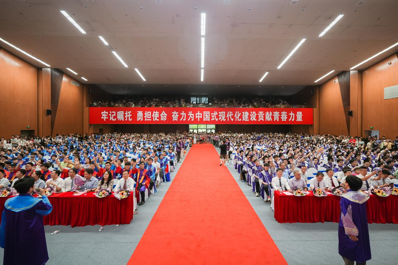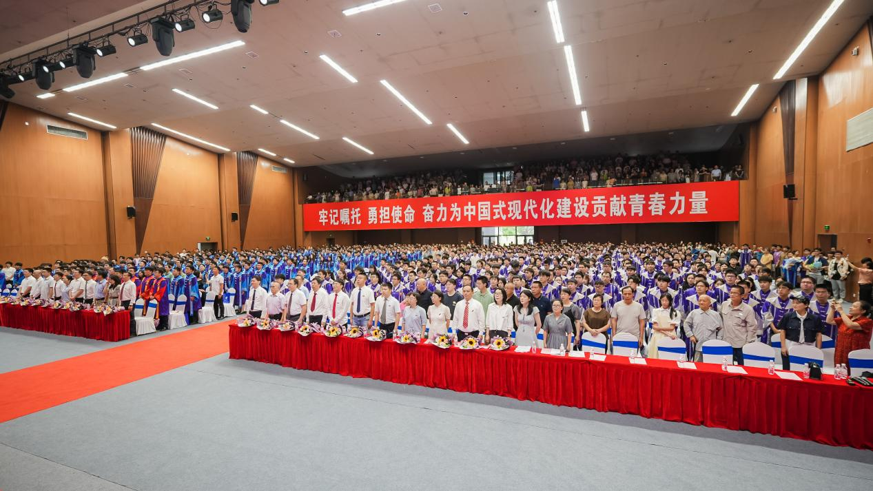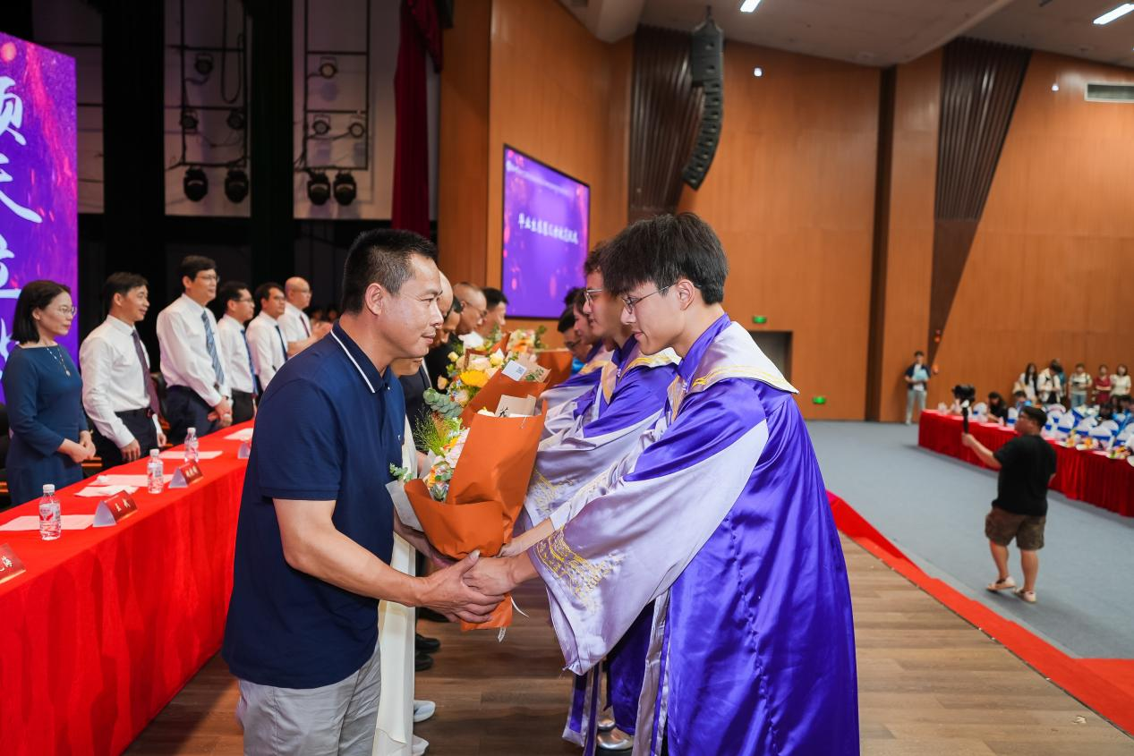 院党委潘志辉书记潘志辉、院长邵振国教授、校友代表魏晓曦董事长、副院长王武教授、副院长张艺明教授、院长助理鲍光海教授、院长助理俆哲壮教授、学位委员会委员、系主任、支部书记、学位点负责人、全体辅导员及2025届毕业生一同参加典礼。典礼由院党委杜领军副书记主持。
