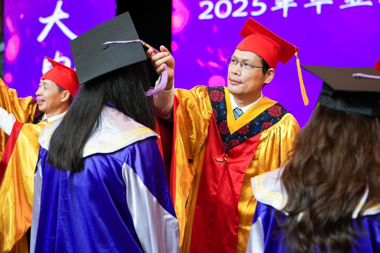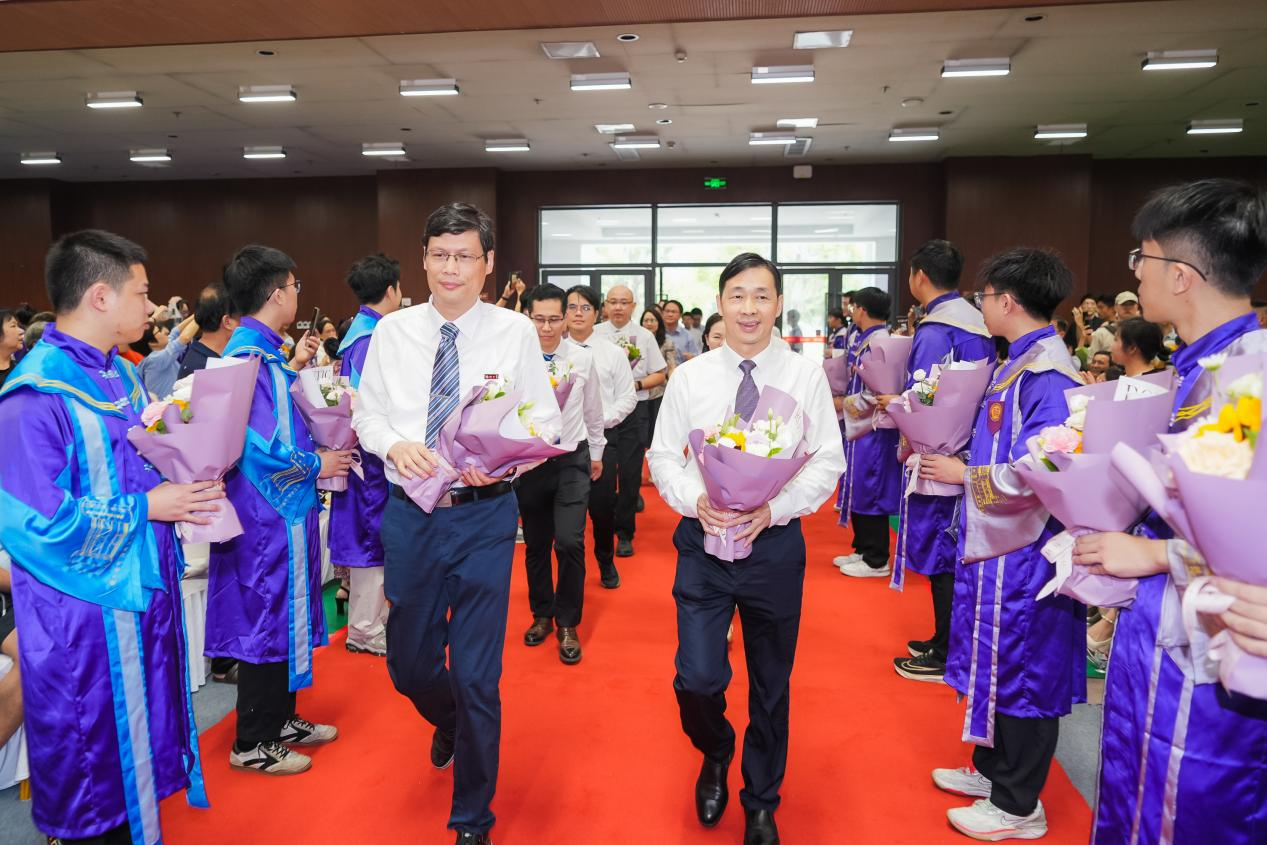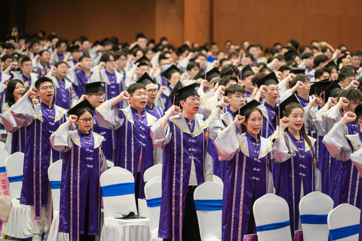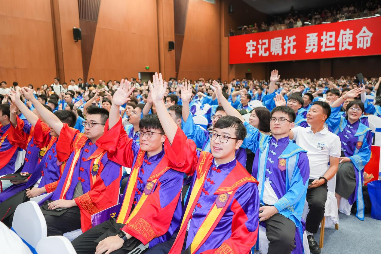 院党委潘志辉书记潘志辉、院长邵振国教授、校友代表魏晓曦董事长、副院长王武教授、副院长张艺明教授、院长助理鲍光海教授、院长助理俆哲壮教授、学位委员会委员、系主任、支部书记、学位点负责人、全体辅导员及2025届毕业生一同参加典礼。典礼由院党委杜领军副书记主持。