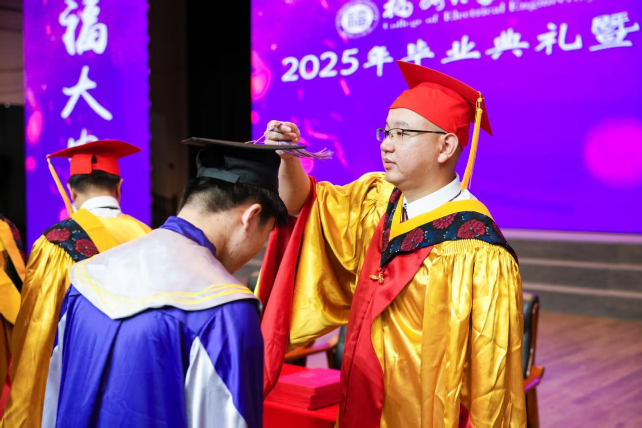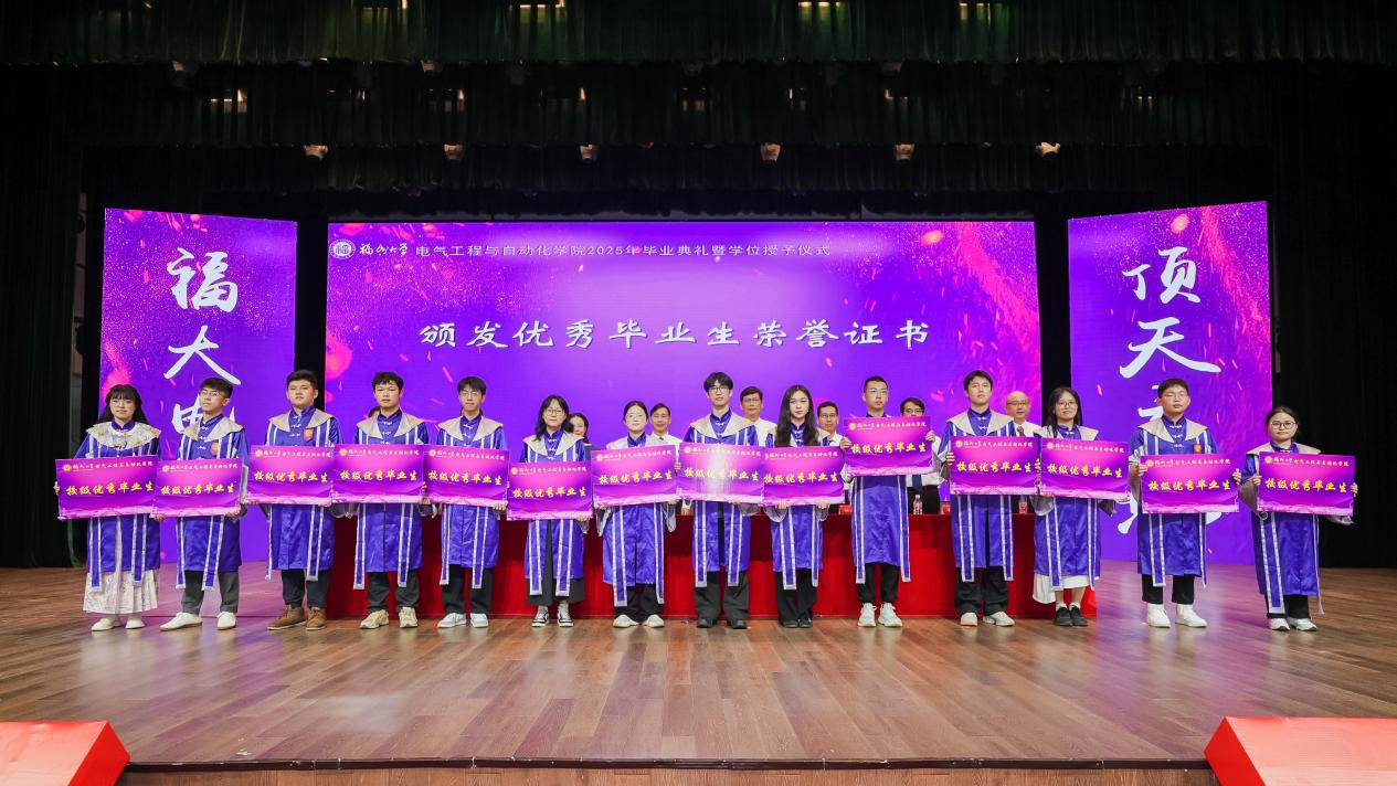 “亲爱的同学们,毕业的钟声已经敲响,但离别从来不是终点,而是你们迈向星辰大海的起点。愿你们带着对福大电气的热爱,勇敢奔赴下一场山海。母校会永远牵挂你们、关注你们、支持你们、祝福你们。祝2025届全体毕业生:前程似锦,一路繁花!在强国建设、民族复兴的伟大征程中,挥洒青春,成就梦想,创造属于你们这一代电气人的辉煌篇章!”