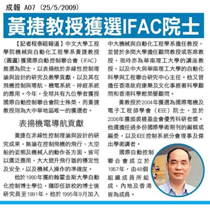 黄捷院士现任香港中文大学工程学院副院长(研究)及卓敏机械与自动化工程学研究教授。