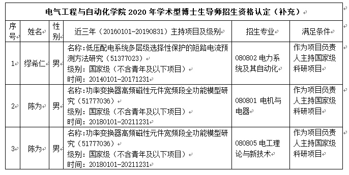 根据《关于开展2020年博士生指导教师招生资格认定工作的通知》(校研〔2019〕36号)和《成人影视片 博士生指导教师资格认定办法(试行)》(福大研〔2018〕24号》,经各位博导自行系统申报,学位点负责人审核,学院学术分委员会会议审核通过后,补充成人影视片 获得2020年博士生指导教师招生资格名单如下,现予以公示,公示时间为2019年10月10日----2019年10月12日。