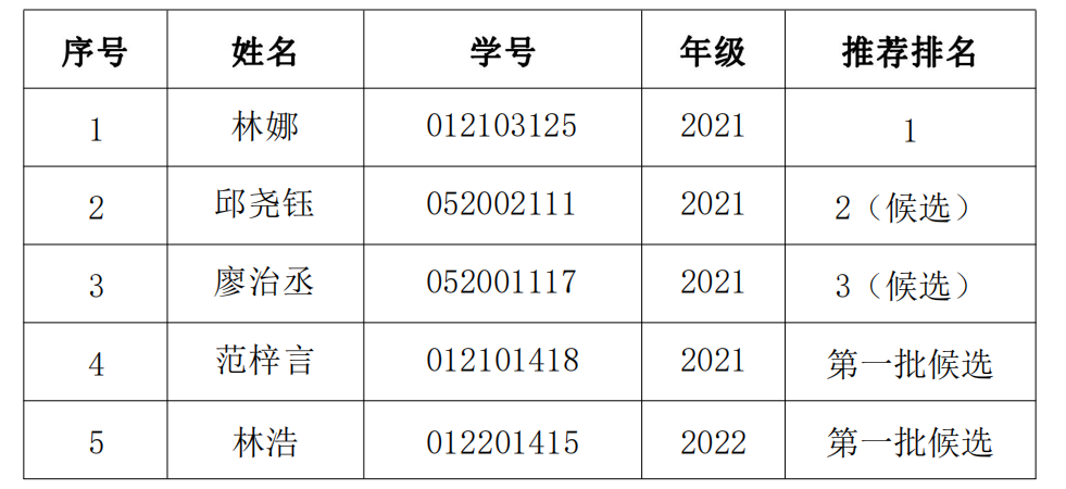 2023-2024学年本科生国家奖学金 (第二批)推荐候选人名单公示
