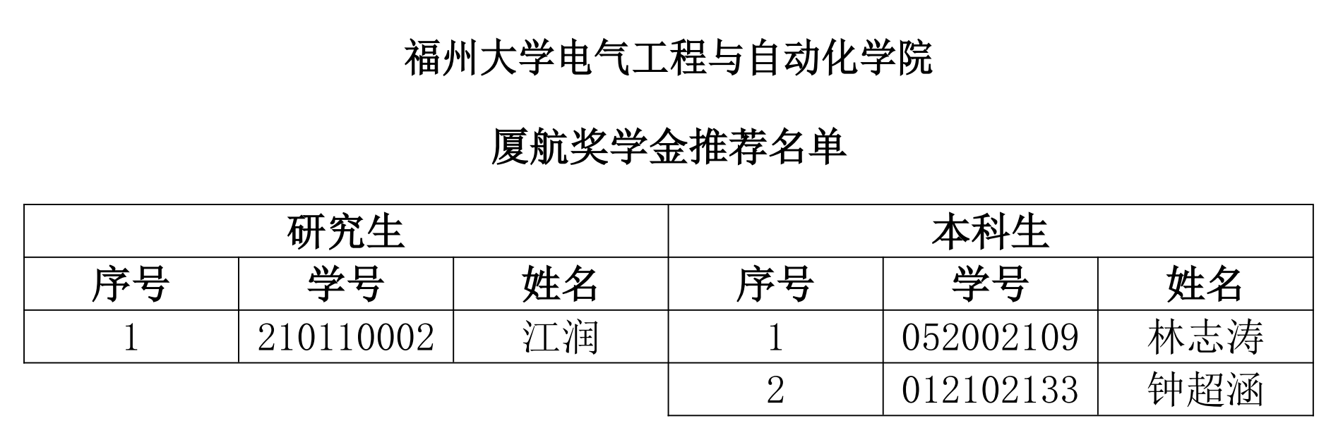 经学生本人申请,年级辅导员审核,学院学生资助工作小组成员讨论,结合各年级申请人年度成绩排名、综合测评、科研竞赛、所获奖助以及家庭经济情况等综合因素考虑,本着公平公正公开的原则,现学院学生资助工作小组决定推荐江润等3名同学参与成人影视片 2024年“厦航奖学金”的评选。现予以公示,公示时间为2024年12月16日-2024年12月19日,在此期间若对上述名单存有异议,请及时反馈给各年级辅导员。