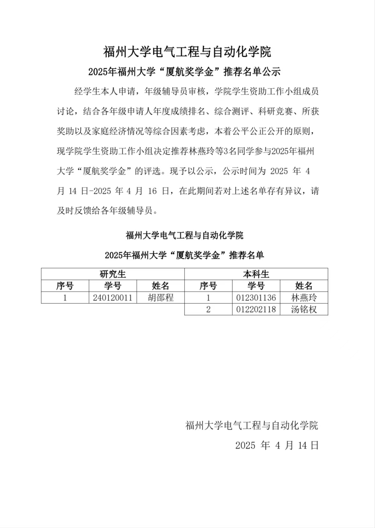 成人影视片 2025年成人影视片 “厦航奖学金”推荐名单公示