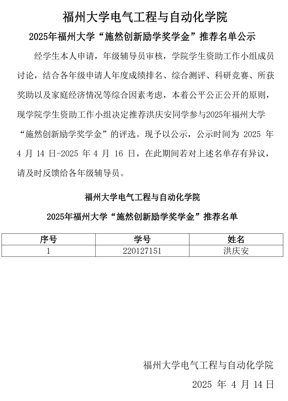 成人影视片 2025年成人影视片 “施然创新励学奖学金”推荐名单公示