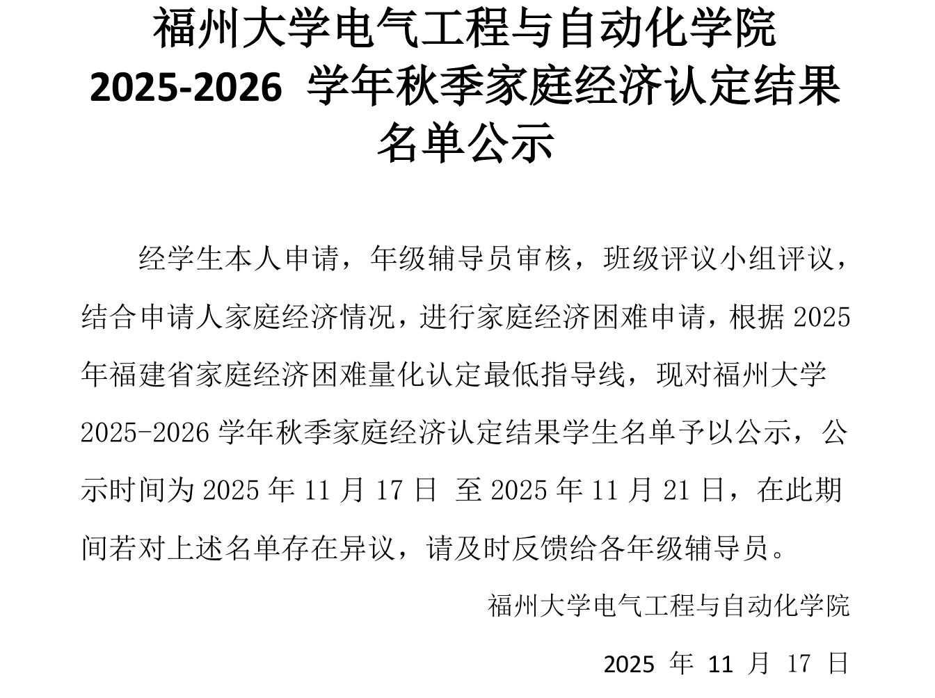 成人影视片 关于2025-2026学年本科生家庭经济困难学生认定领导小组成员及年级评议小组成员的公示