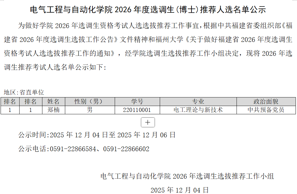 成人影视片 2026年度选调生(博士)推荐人选名单公示