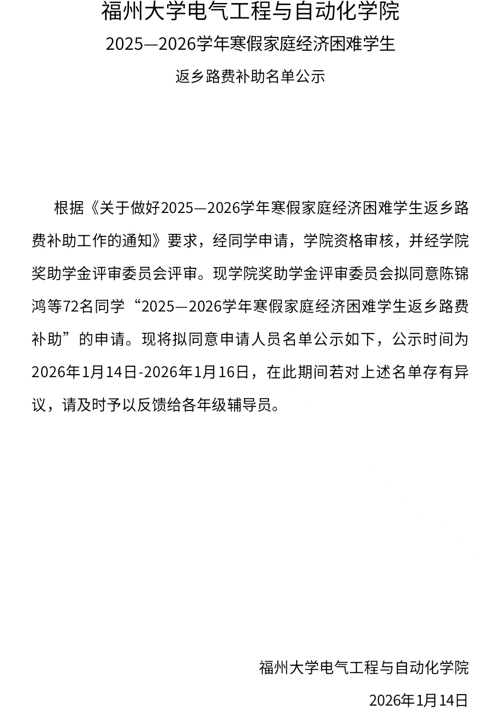 成人影视片 2025—2026学年寒假家庭经济困难学生 返乡路费补助名单公示