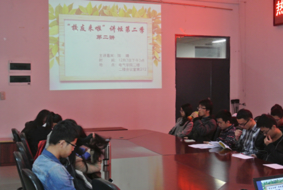 陈晴师姐是本校电器专业的研究生,其后到日本东京大学攻读博士学位,由她首先为研究生们带来一场别开生面的讲座。陈晴师姐讲述了自己的求学经历和工作历程,并分享了自己成功的学习技巧和工作方法。在学习方面,她认为基础是关键,每次回顾旧知识都会有新的体验。而在工作方面,她认为应该先了解公司的整体概况,并从整体出发然后细化与升华。最后,陈晴师姐认为:自信是一切的基础。