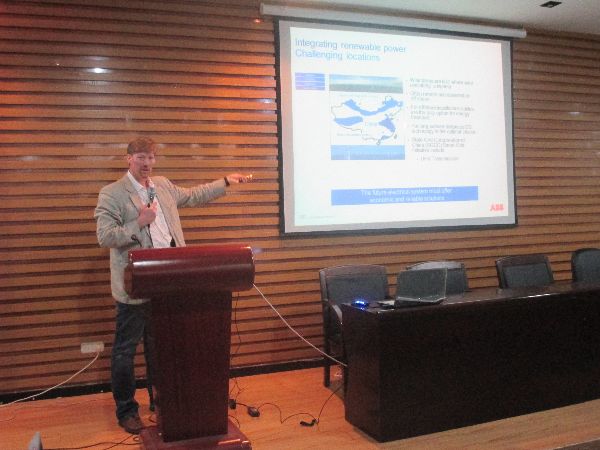 此次论坛主题是ABB(中国)中压技术中心介绍与ABB中压产品智能电网解决方案。Kim Hagstrom 先生,自1998年加入ABB至今,先后从事了电力系统销售,系统维护和馈线自动化相关的一次设备的研发工作。作为本领域的专家,Kim Hagstrom 先生首先介绍了ABB公司,包括发展历史、企业业务、在华简介、企业产品,同时引出今天的主题ABB中压技术中心介绍与ABB中压产品智能电网解决方案。论坛上还展示了旗下全系列领先的智能电网解决方案,为未来电网在灵活电网、发电优化、智能家居、智能建筑和智能生产等领域的发展提供支持。同时Kim Hagstrom 先生还不忘代表ABB公司向广大福大电气学子抛出到ABB公司工作的橄榄枝,他的热情也赢得了在场电气研究生的阵阵掌声。同学们在仔细聆听了Kim Hagstrom 先生的发言后进行了积极的讨论,并且就自己感兴趣的方面进行了提问。