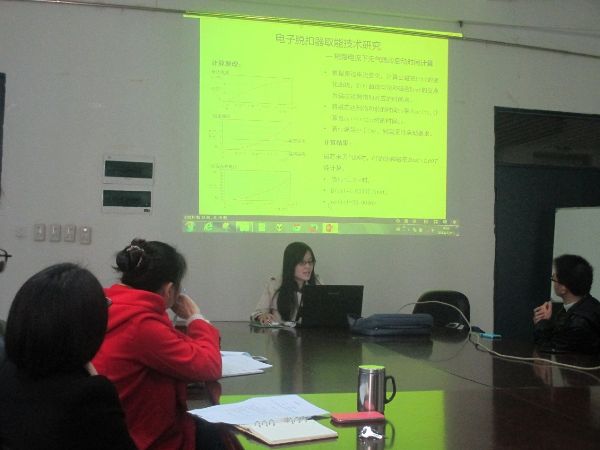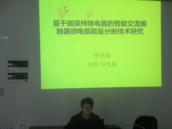 首先,史坤涛同学介绍了 《基于PIC单片机的环网柜温度、气体监控器设计》 ,他通过对整体的概述、监控器所要实现的功能以及软、硬件部分的设计最终得出较为精准的实验结果并简要分析其可改善的部分;随后,李炜荣同学就 《基于磁保持继电器的智能交流接触器微电弧能量分断技术研究》  进行详细地讲解,由研究背景到实验思路再到实验对象,最后验证实验得出结论,可见其思维缜密;紧接着周少杰、郭雅鸿、吴小梅、何晓燕,分别展示他们对于 《基于STM32单片机的电流监测系统》 、 《基于ansoft、saber的不同气隙CT取能模型仿真》 、 《低压系统多层级短路故障早期检测辨识研究》 、 《系列交流接触器三维温度场仿真系统》 的研究,严谨的组织架构辅以形象的图表处理达到了深入浅出的效果;最后,由来自电力专业的许晔同学给大家讲述 《采用不变矩的谐振接地系统故障选线新方法》 ,其独到的见解,新颖的思路,给人以启迪。
